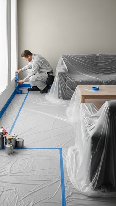 Cada projeto que realizamos segue um padrão técnico claro: preparação correta, proteção completa do ambiente, recortes precisos e acabamento uniforme.